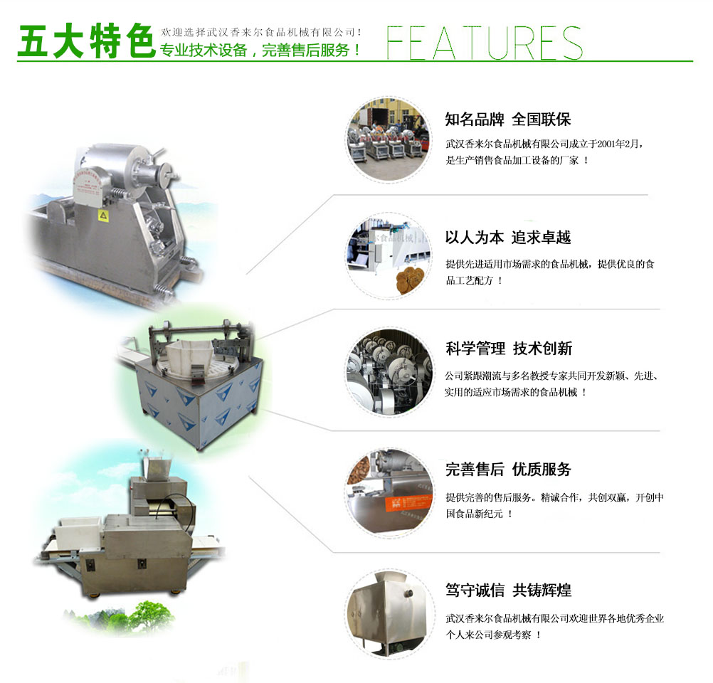 武漢香來(lái)爾食品機(jī)械有限公司成立于2001年2月,是生產(chǎn)銷(xiāo)售休閑食品加工設(shè)備的廠(chǎng)家。公司緊跟市場(chǎng)潮流與華工、華農(nóng)多名共同開(kāi)發(fā)新穎、實(shí)用的適應(yīng)市場(chǎng)需求的食品機(jī)械,自有車(chē)、刨、鉆、銑、剪板、折彎等先l進(jìn)機(jī)床100多臺(tái) 套。7年誠(chéng)信通會(huì)員,產(chǎn)品出口拉美、非洲、東南亞、歐洲等很多國(guó)家和地區(qū),國(guó)內(nèi)很多食品企業(yè)都是我們的合作伙伴。目前公司專(zhuān)門(mén)設(shè)立一個(gè)的售后 服務(wù)班子,在公司逐步發(fā)展強(qiáng)大的過(guò)程中,一直堅(jiān)持售后服務(wù)的同步發(fā)展,精良的食品設(shè)...