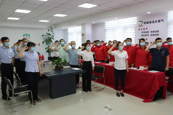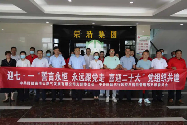 值此“七一”來(lái)臨之際,為深化銀企合作,積極構(gòu)建“資源共享、優(yōu)勢(shì)互補(bǔ)、互相促進(jìn)、共同提高”的黨建工作新格局,充分展現(xiàn)黨建引領(lǐng)促發(fā)展的作用,踐行榮浩集團(tuán)“共創(chuàng)、共贏、共榮”的價(jià)值觀,6月22日,中共盱眙榮浩天然氣發(fā)展有限公司支部委員會(huì)與中共中國(guó)農(nóng)業(yè)銀行盱眙支行風(fēng)控與信用管理部支部委員會(huì)聯(lián)合開展“誓言永恒、永遠(yuǎn)跟黨走、喜迎二十大”黨建共建主題活動(dòng),為七一獻(xiàn)禮。